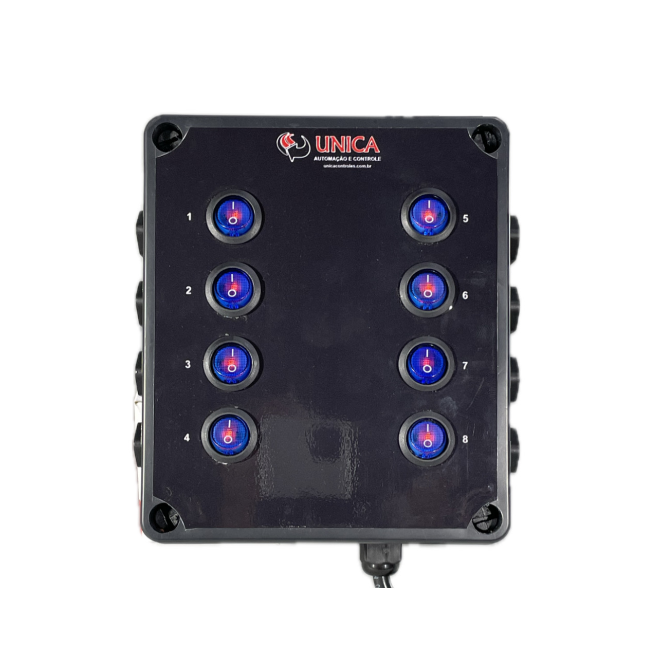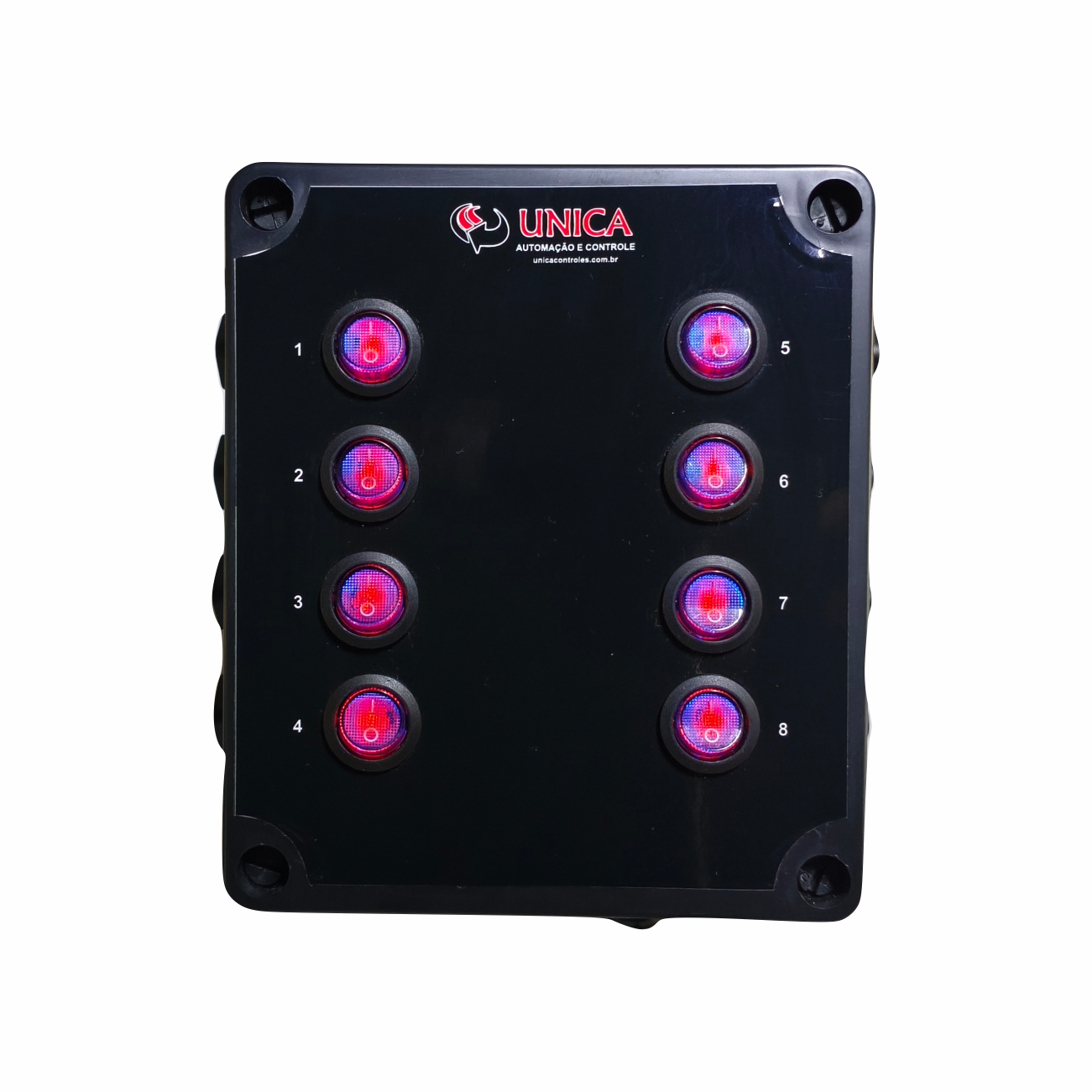 • 8 Chaves tipo gangorra iluminadas (LED) com indicação ON/OFF